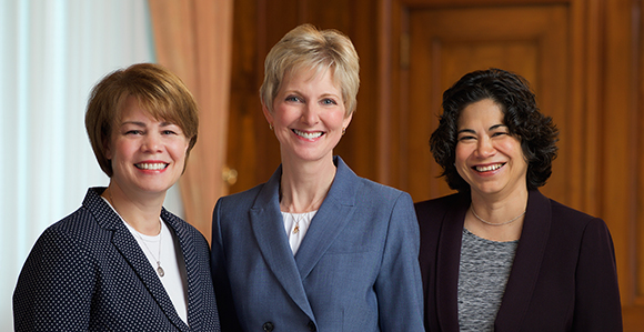 Relief Society General Presidency (left to right): Sharon Eubank, First Counselor; Jean B. Bingham, President; and Reyna I. Aburto, Second Counselor.